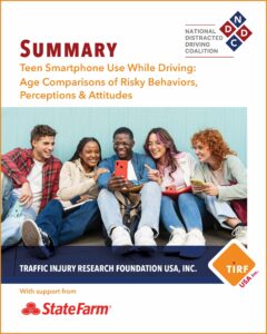 Edina, MN, February 27, 2026 — Distracted driving remains a leading contributor to road deaths in North America according to official statistics. New research from the Traffic Injury Research Foundation USA, Inc. (TIRF USA) analyzed results of a national survey of 1,217 youth from 26 states. It investigated how risky behaviors evolve as teens age and they gain driving experience, taking a closer look at age-related patterns in teen smartphone use, risk perception, and social influences to help target prevention strategies. The survey was conducted in partnership with the National Distracted Driving Coalition (NDDC) with support from State Farm®.